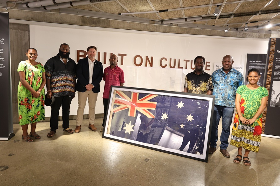 The Australian flag lowered on Papua New Guinea’s Independence Day in 1975 at Ossima Primary School, West Sepik, has been returned to the Australian Government – and is now on display at the National Museum and Art Gallery (NMAG).