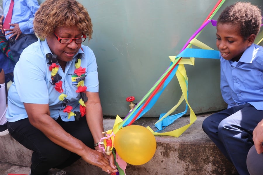 Community member and parent Ms Anna Gawi said the new water tanks have helped to address long running challenges.